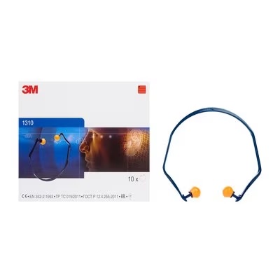 3M™ E-A-R™ 1310 Hörselproppar med bygel har en patenterad, flexibel hjässbygel som anpassar sig till käkens och huvudets rörelser för en bekväm och säker passform med ett jämnt, lågt tryck i örat. Vår robusta bygel i blå acetalplast är framtagen för att passa både bakom huvudet och under hakan, vilket gör den optimal för användare som utsätts för oregelbundet buller.